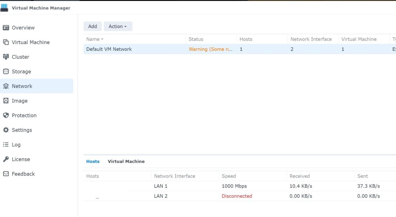 2. Bonsoir à tou(te)s J'ai récupéré il y a peu une carte PCIe 10Gbits non officielle pour mon NAS 923+ pour évoluer en douceur dans un 1er temps de 1Gbits vers 2.5Gbits (puis plus tard si besoin vers 10Gbits) Seulement comme ma carte n'est pas une officielle Synology mais un modèle XikeStor SKN-A113-Mini (chip AQC113), je rencontre logiquement quelques résistances de DSM :) Concernant l'activation des drivers et la mise en place de la nouvelle interface eth2, c'est ok (en plus des 2 existantes eth0 et eth1 en 1Gbits) J'ai suivi les instructions de DaveR007 provenant de https://www.reddit.com/r/synology/comments/1f2ztpb/comment/lkg5k4g/ Concrètement, le paramétrage des drivers n'étant pas persistant j ai une tache planifiée qui démarre à chaque boot les drivers suivi de l'instruction "/etc/rc.network restart" Donc je suis capable de me connecter en 2.5G et obtenir une IP sur l'interface eth2, tout est ok Par contre impossible d'utiliser Virtual Machine avec cette nouvelle carte, elle n apparait simplement pas dans la partie Network (même si je connecte le cable réseau sur eth2. Notez que dans l exemple j étais sur LAN1 (eth0) Manager La seule solution que j'ai et qui fonctionne est de désinstaller VM Manager puis désactiver et réactiver open switch au niveau de Eth2 (LAN3) ce qui a pour effet de forcer de "forcer" un paramétrage correct pour VM Manager Je me suis un peu documenté et cela a pour effet de paramétrer correctement la partie OVS : ovs-vsctl show Bridge "ovs_eth1" Port "eth1" Interface "eth1" Port "ovs_eth1" Interface "ovs_eth1" type: internal Bridge "ovs_eth0" Port "eth0" Interface "eth0" Port "tap021132271ac4" Interface "tap021132271ac4" Port "ovs_eth0" Interface "ovs_eth0" type: internal Bridge "ovs_eth2" Port "eth2" Interface "eth2" Port "ovs_eth2" Interface "ovs_eth2" type: internal Cependant cette manip n'est pas persistante et à chaque redémarrage, je pers la "bonne" config qui me permet l'utilisation de eth2 (LAN3) sur VM manager. Je serai donc ravi d'avoir vos avis là dessus et si par le plus grand des hasard quelqu'un utilise ce genre de cartes non officielle (drivers atlantic_v2), ca pourrait grandement m'aider. Je précise que je suis sur DSM v7.3.2 Merci à vous !