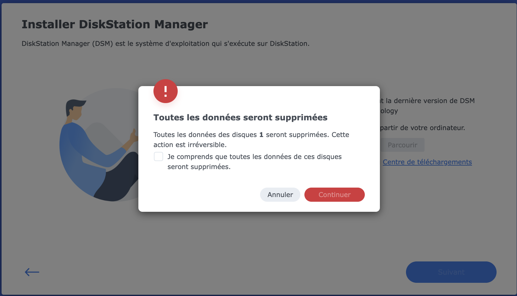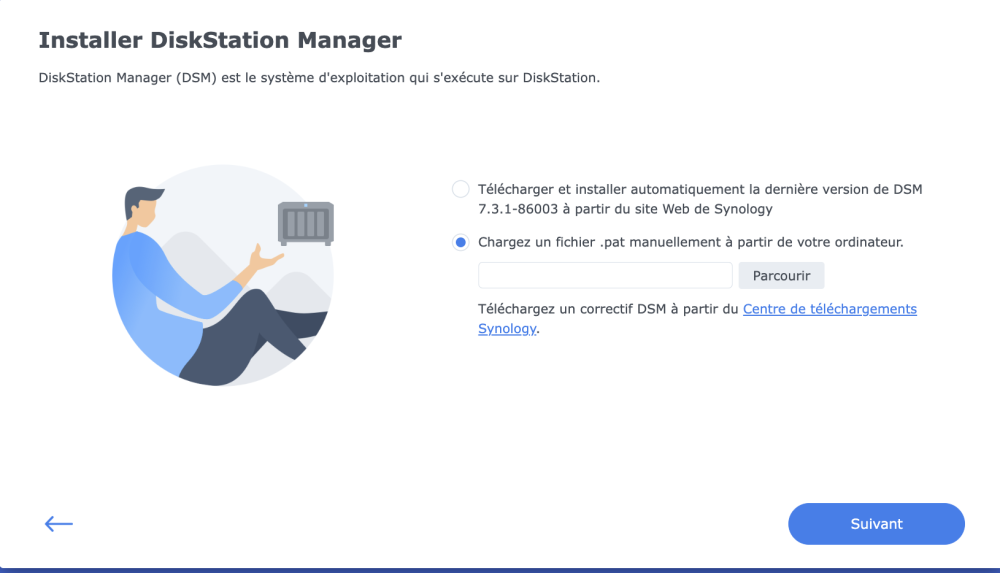 Bonjour tout le monde ! Premier message sur ce forum - même si je vous lis évidemment régulièrement pour des trucs et astuces ahaha. Je viens d'acheter un DS 718+ pour remplacer mon DS112+... qui doit avoir plus de 14 ans de bons et loyaux services :) Mais bon, le choupi, il était fatigué et devenait très lent. Retraite du coup 😇 J'ai donc éteint mon 112+, sorti le DD, mis le DD dans mon 718+, démarré, utilisé https://finds.synology.com/ pour le trouver. Jusque là, ok. Mais au démarrage, il me proposer d'installer la dernière version de DSM et pour se faire, il veut formater mon DD. Les options que j'ai en tête : je tente de faire la MAJ de DSM sans mettre de DD dans le NAS (en téléchargeant la derniere version via mon PC et en la poussant). Mais je ne suis pas certain que ca aide. Qu'en pensez vous ? j'ai pas le choix : je formate mon DD pour une réinstalle clean. Relou à souhait. Mais efficace? J'ai l'impression que le cas est connu chez Syno : https://kb.synology.com/fr-fr/DSM/tutorial/How_to_migrate_between_Synology_NAS_DSM_6_0_and_later. -> "Le groupe de stockage du périphérique source a été créé dans DSM 7.0 ou une version antérieure, mais le périphérique de destination a été entièrement réinstallé avec DSM 7.1 ou une version ultérieure." Conseils bienvenus ! Merci beaucoup et bonne journée à tous et à toutes