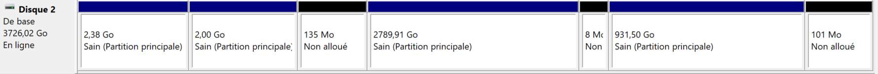Petit update: En rentrant du boulot j'ai branché les disques un par un sur on pc via un dock sata. Tout les disques sont lisibles, pas de bruits bizarre. Il se présente tous sous cette forme: Je suppose que c'est ce qui est logique de voir. Bien sûr je ne peut rien en faire mais du coup je pense que j'ai plutôt un problème avec mon syno qu'avec les disques. Je me demande au vu du message que j'ai reçu de mon syno par mail si ce n'est pas un problème d'alimentation du coup. Si quelqu'un a une idée de comment le tester ? je pense a commandé une alim sur amazon histoire d'écarter ce souci.