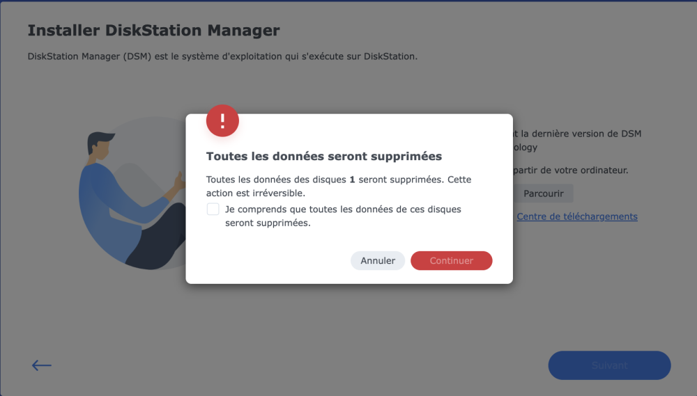 2. Bonjour tout le monde ! Premier message sur ce forum - même si je vous lis évidemment régulièrement pour des trucs et astuces ahaha. Je viens d'acheter un DS 718+ pour remplacer mon DS112+... qui doit avoir plus de 14 ans de bons et loyaux services :) Mais bon, le choupi, il était fatigué et devenait très lent. Retraite du coup 😇 J'ai donc éteint mon 112+, sorti le DD, mis le DD dans mon 718+, démarré, utilisé https://finds.synology.com/ pour le trouver. Jusque là, ok. Mais au démarrage, il me proposer d'installer la dernière version de DSM et pour se faire, il veut formater mon DD. Les options que j'ai en tête : je tente de faire la MAJ de DSM sans mettre de DD dans le NAS (en téléchargeant la derniere version via mon PC et en la poussant). Mais je ne suis pas certain que ca aide. Qu'en pensez vous ? j'ai pas le choix : je formate mon DD pour une réinstalle clean. Relou à souhait. Mais efficace? J'ai l'impression que le cas est connu chez Syno : https://kb.synology.com/fr-fr/DSM/tutorial/How_to_migrate_between_Synology_NAS_DSM_6_0_and_later. -> "Le groupe de stockage du périphérique source a été créé dans DSM 7.0 ou une version antérieure, mais le périphérique de destination a été entièrement réinstallé avec DSM 7.1 ou une version ultérieure." Conseils bienvenus ! Merci beaucoup et bonne journée à tous et à toutes Edit 5 min apres : Je viens de DL le dernier .pat. Je peux le sélectionner. Mais à la fin, ca revient au même. il me propose de formater le DD 😱