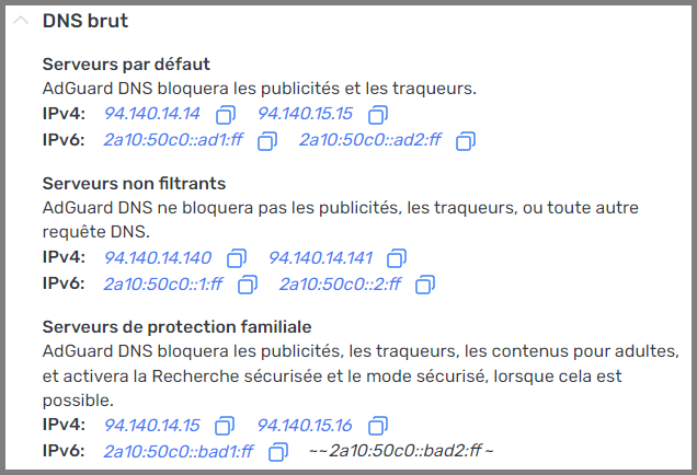 Salut @.Shad., Le problème avec les serveurs DNS c'est que leur hiérarchie n'est pas respectée. Le client peut faire appel à n'importe quel serveur de la liste. Si le DHCP distribue plusieurs IP DNS, il vaut mieux que ces serveurs résolvent les requêtes de la même manière. Je suis plutôt pour une deuxième instance pi-hole (ce que j'ai), ou bien à la limite passer par le serveur DNS du NAS avec une zone correctement paramétrée. Surtout pas d'autres serveurs externes qui sont incapables de résoudre les adresses locales.2 points