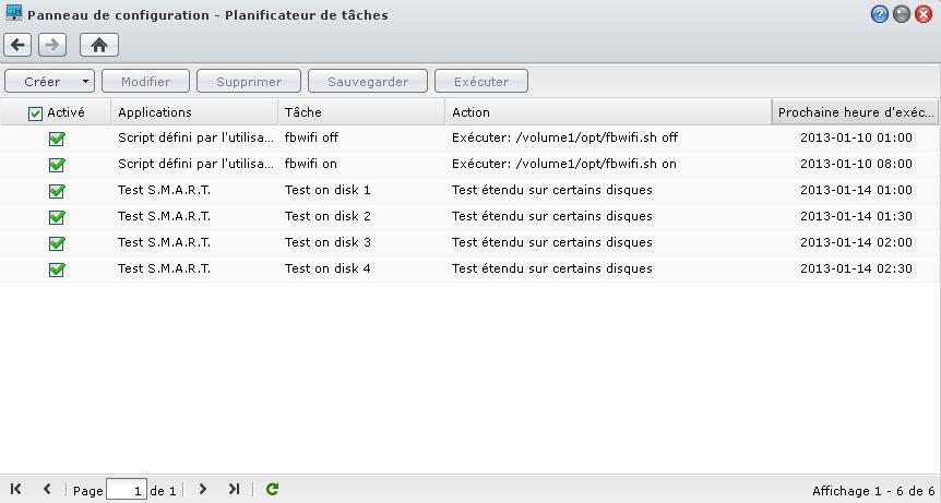 Je viens de voir qu'ils avaient intégré une petite fonctionnalité bien sympa pour tous ceux qui utilise des scripts. Ils ont intégrés un planificateur de script (voir pièce jointe) qui intègre les modifications dans le crontab à l'aide d'une application "synoschedtool" et qui se réfère à "synoschedtask" situé dans /tmp. Le gros plus est que cela est dynamique, plus besoin de redémarrer le cron, il redémarre certainement tout seul mais s'est transparent pour l'utilisateur.