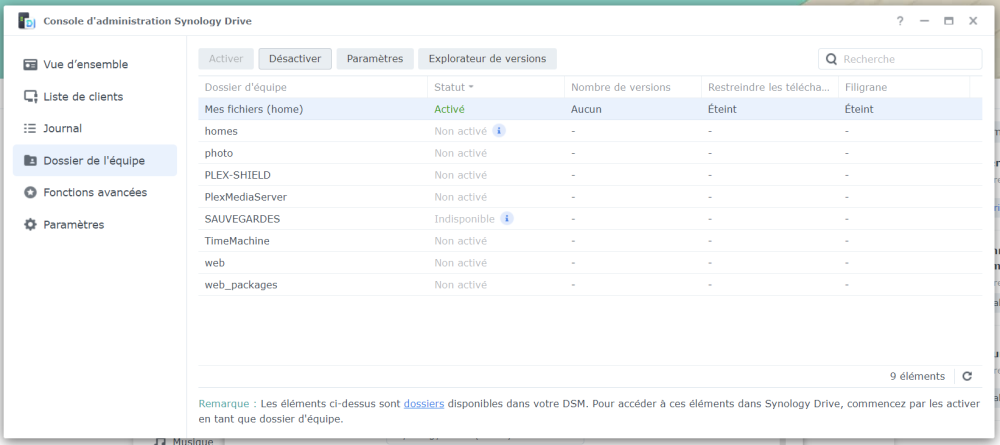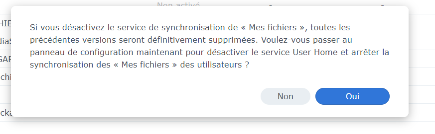 Bonjour à tous, Je rencontre un problème avec Synology Drive, et j'aurais besoin de vos lumières pour y voir plus clair. Voici la situation : Les données de mes utilisateurs sont actuellement stockées dans leurs dossiers "home". Je souhaite utiliser Synology Drive uniquement comme un répertoire partagé pour stocker et retrouver des données spécifiques à différents endroits. Je n'ai pas besoin que Synology Drive indexe toutes les données des dossiers "home", ce qui, dans mon cas, représente environ 8 To de données. Le problème principal est que Synology Drive semble indexer tout le contenu des dossiers "home", ce qui entraîne une augmentation massive de la taille de la base de données associée à Drive. Cette indexation, qui n'est pas nécessaire dans mon cas, prend beaucoup de place et me paraît aberrante. Ce que j'ai essayé : La seule solution proposée semble être de désactiver une option dans les paramètres. Voici la capture d’écran correspondante : Cependant, cela affiche un message qui suggère de désactiver complètement la création de répertoires "home" pour tous les utilisateurs. Voici la deuxième capture d’écran qui explique ce point : Problème : Je ne veux absolument pas désactiver la création des répertoires "home" pour mes utilisateurs, car ces dossiers sont indispensables pour stocker leurs données personnelles. Ma question : Comment configurer Synology Drive pour qu'il n'indexe pas tous les dossiers "home", mais se limite uniquement à un ou plusieurs répertoires partagés spécifiques, sans affecter la création des dossiers "home" ? Je vous remercie d'avance pour votre aide et vos conseils ! Merci Pierre
