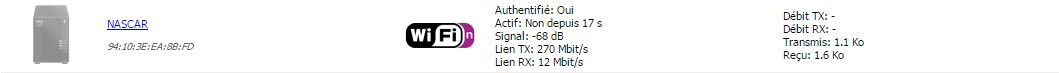 Dans l'interface d'admin de la Freebox, je vois le NAS dans la liste mais en "grisé" (voir PJ), authentifié : oui, bon débit mais aucun échange de données. il n'est pas actif. Il a bien récupéré une IP en DHCP auprès de la box.