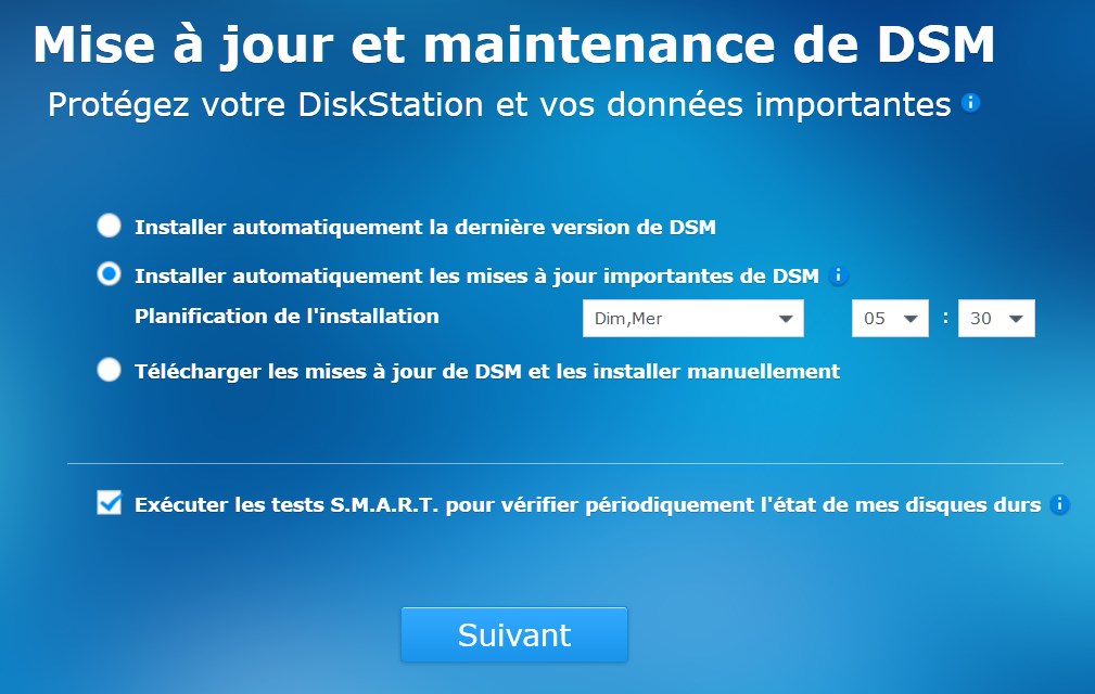 Une fois sur le bureau DSM, si je retourne dans les options, j'ai l'autre option qui est coché "DSM le plus récent et toutes les mises à jour".