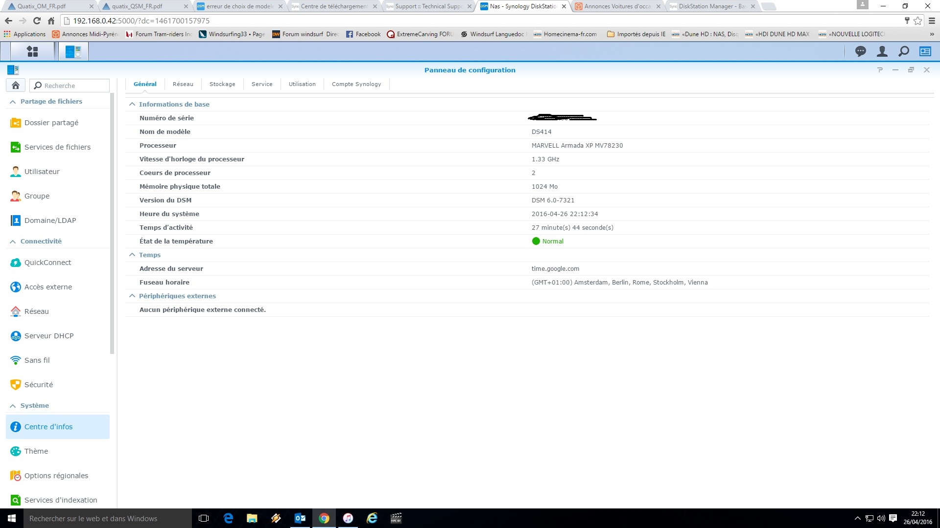vu la capture,  le modèle est bien un DS414..... tu l'as acheté où ton Syno ? parce que là , y a un problème .