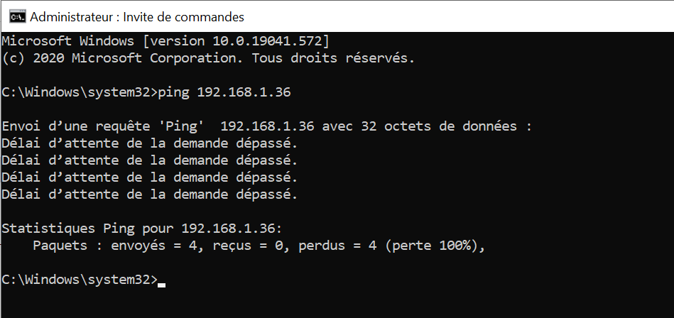 Voici la réponse du ping "délai d'attente dépassé"