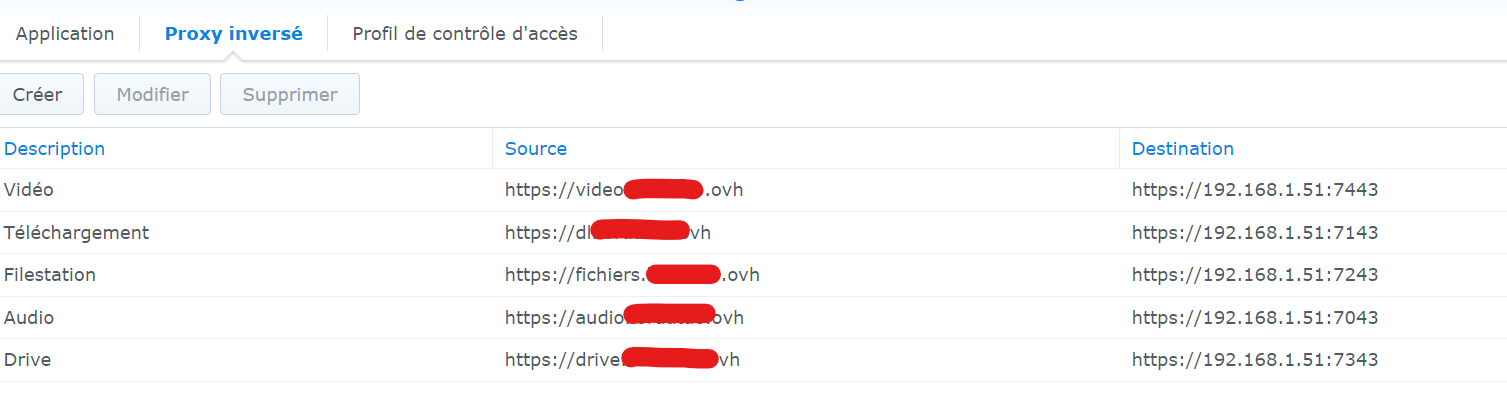 Oui je comprends la démarche mais pas comment la régler sur mon NAS. J'ai pris un DNS OVH afin d'être tranquille même si je change de box. A priori, mes ports semblent ouverts au vu des test que j'ai pu faire (telnet) et mon DNS pointe bien sur l'IP de ma box (nslookup). Malgré cela, je n'ai pas d'accès externe à mon NAS (par le navigateur ou les applis). J'ai réglé mon reverse proxy (je ne sais pas si je l'ai bien réglé malheureusement). J'ai ouvert les ports 80 et 443 sur le parefeu et la box. Je suis perdu... et avant de régler DNS serveur et VPN serveur, je veux être sûr que le reste fonctionne avant.