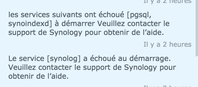 Services "pgsql, synoindexd, synolog" échouent au démarrage