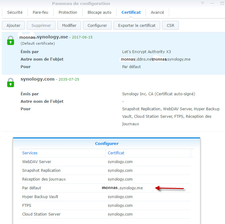 et j'ai  sélectionné dans la colonne certificat, mon certificat "monnas.synology.me"