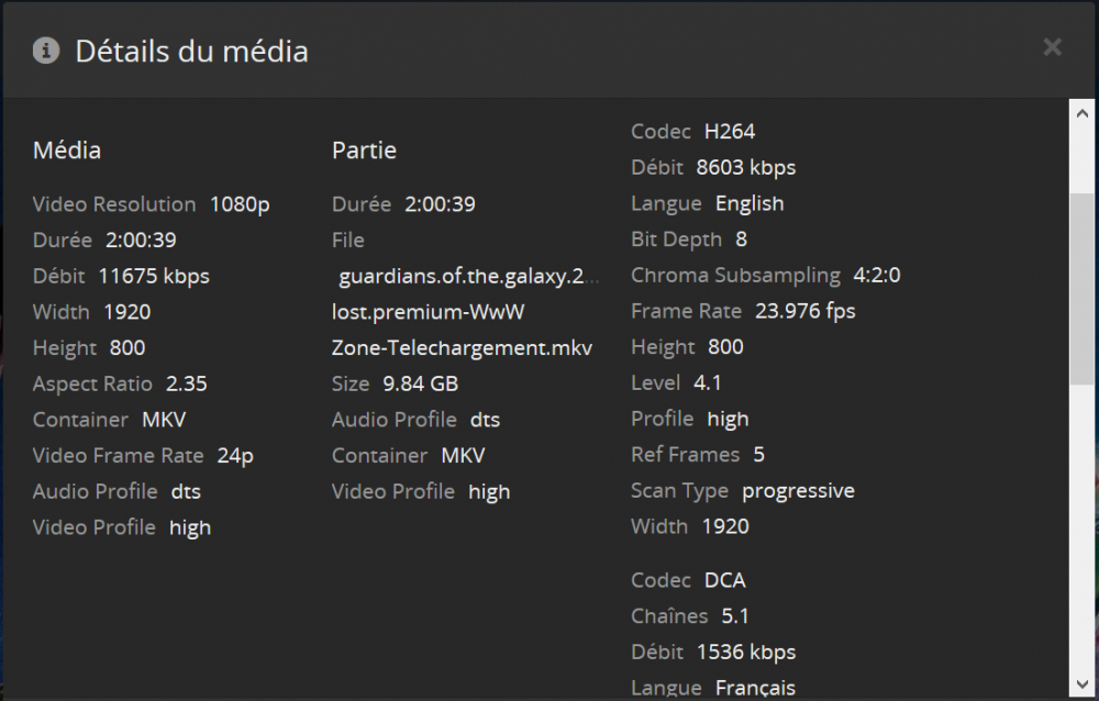 A priori ça serait lié au codec DCA, voir le DTS 5.1. Mais si ma télévision lit le fichier, via USB, pourquoi n'arrive telle pas à le lire via Plex
