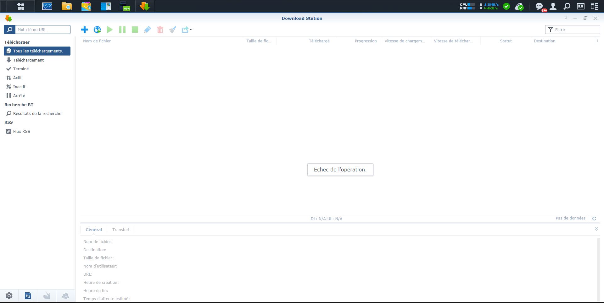 Je suis passé à la version 6.1.1-15101 update 3 (actuellement je suis à la 6.1.1-15101 update 4) et depuis cette mise à jour j'ai download station qui m'affiche un message d'erreur. J'ai désinstallé et réinstallé download station sans résultat ainsi que redémarré mon nas (un DS213J).