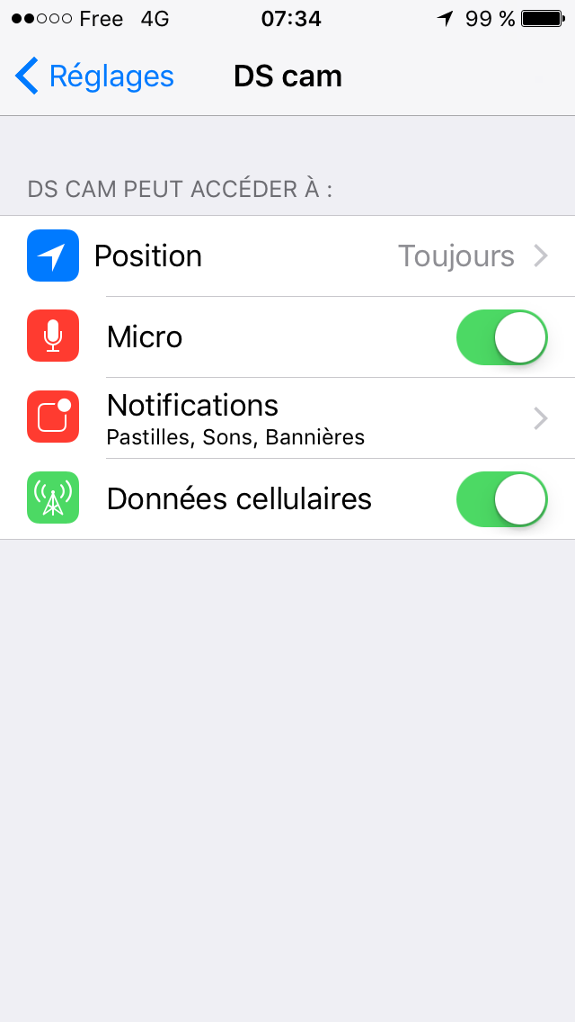 sur mon iPhone, DSCam reste connecté en tache de fond (il ne lance pas d'authentification lorsque je réactive l'App).