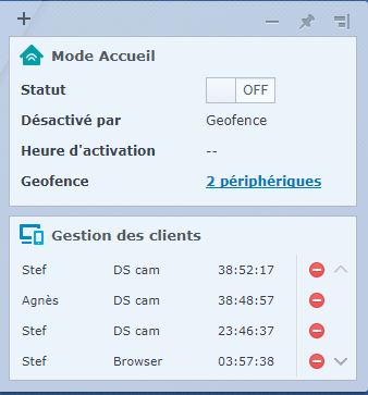 je part de la maison et arrivé au boulot, depuis un navigateur je me connecte à surveillance station et je constate que le mode accueil est bien passé en OFF (j'avais vérifié son état avant de partir il était en ON)