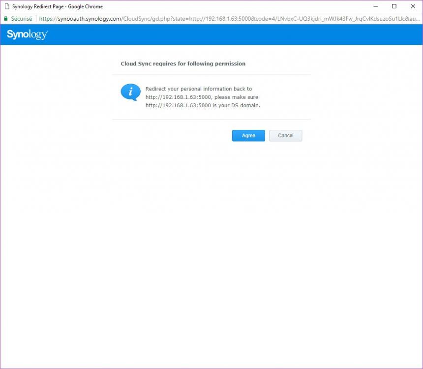 Comme Onedrive limite les fichiers à 10Go je voulais synchroniser mon NAS avec mon google drive pour mes fichiers vidéo et là ça coince toujours au même endroit quand je veux ajouter google drive, après avoir accepté l'accès à mon drive google puis l'adresse de mon NAS...(cf capture d'écran, la fenêtre reste blanche et bloquée)
