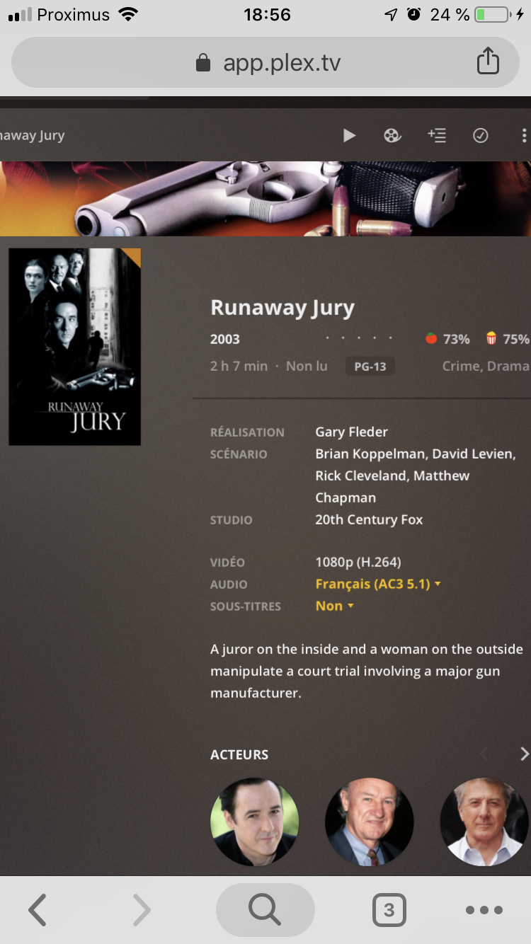 Si tu es sans transcodage, alors dans le tableau de bord c'est marqué "lecture direct"