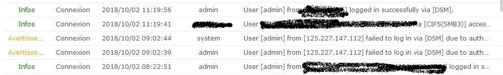 en regardant de plus près, j'ai d'autres tentatives de connexion via cette adresse IP fin septembre,  alors que mon dernier ticket Syno a été clos vers le 20/09.
