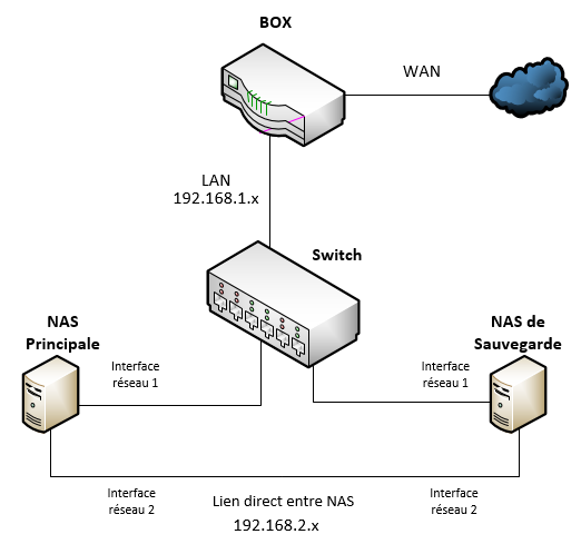 Par le switch cela ralenti beaucoup les accès au NAS, alors qu'avec le lien direct entre les 2 NAS aucun ralentissement.