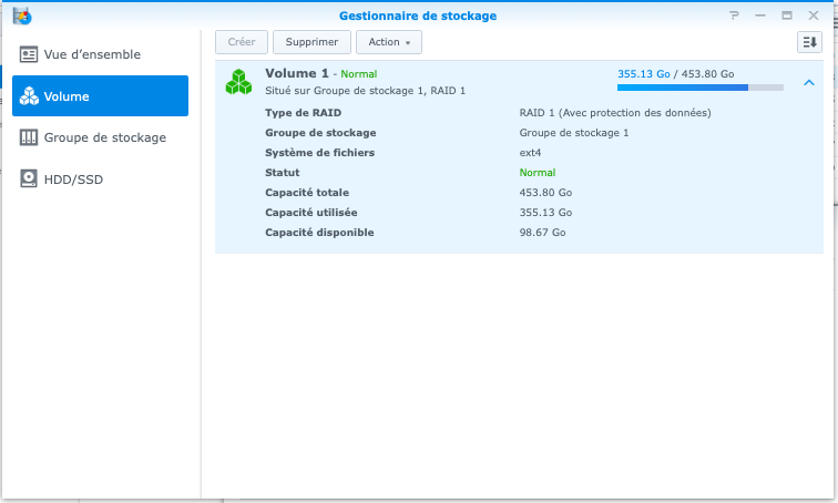 Bonjour, je débute ...difficilement avec un DS218J équipé de 2 disques de récupération de 500Go ( en fait 465,8Go), en attendant les disques durs définitifs.