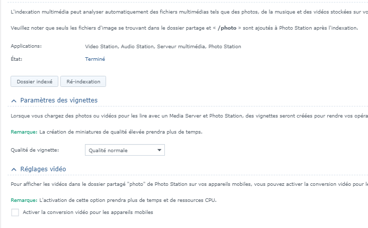 Dans les dossiers indexés qu'est-ce que tu as. Plus bas ,tu as évidemment sélectionné Haute qualité et activé la conversion.