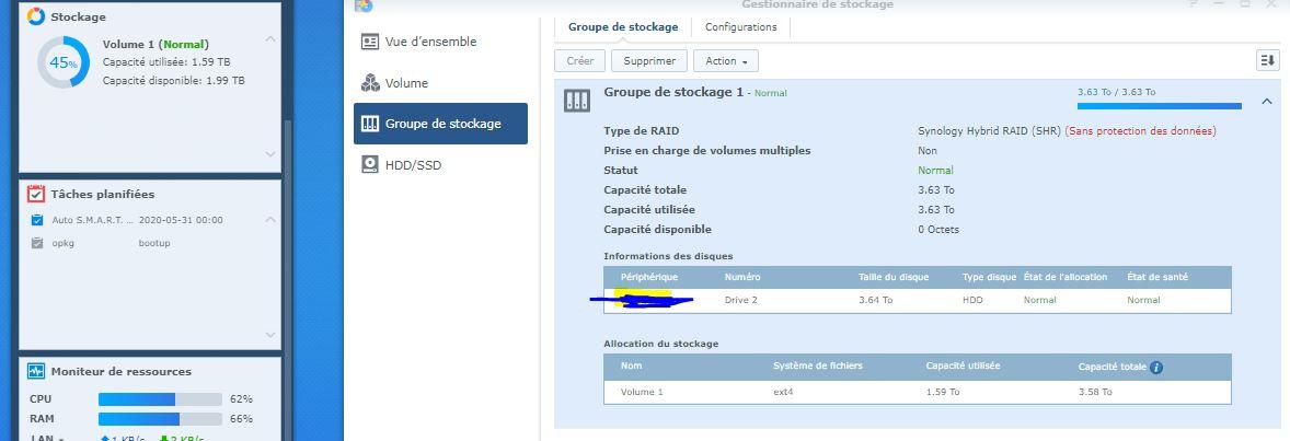 Avec ton nouveau nas je te conseille de passer en BTRFS au lieu de EXT4 pour formatage du disque par le nas ( il te pose la question lors de initialisation de celui-ci) . cela permet d’économiser un peu de place