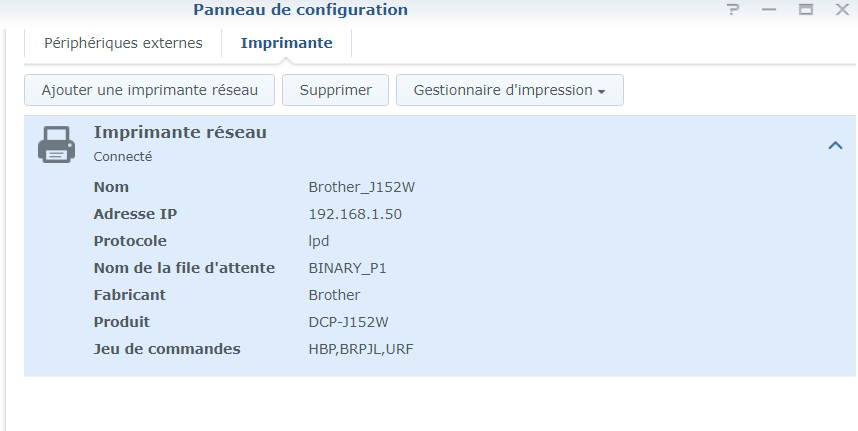 J'ai un DS218 à jour et une BROTHER DCP-J152W
