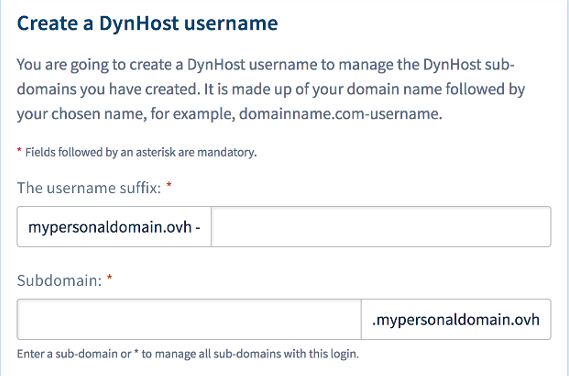 • Dans "Create a DynHost username" : Dans Subdomain tu mets " * ", le reste c'est pareil tu ne changes rien.