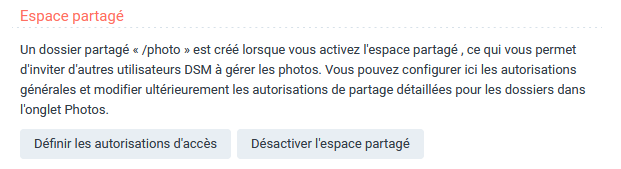 l'espace partagé, c'est le dossier partagé "/photo" à la racine du NAS. (sauf erreur de ma part, c'était le dossier de feu Photo Station)