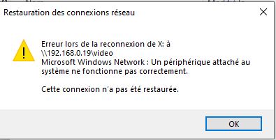 En rédémarrant le PC, Win10 me dit qu'il n'a pas pu reconnecter tous les lecteurs réseau.