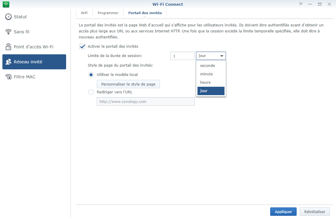 En activant le portail captif, tu dois bien tomber sur une page web sur laquelle tu dois valider/authentifier le périphérique. Cette page peut être standardisée ou personnalisée en uploadant une image, ou tu peux utiliser une redirection vers une page Synology. Le comportement que tu as eu me semble donc normal.