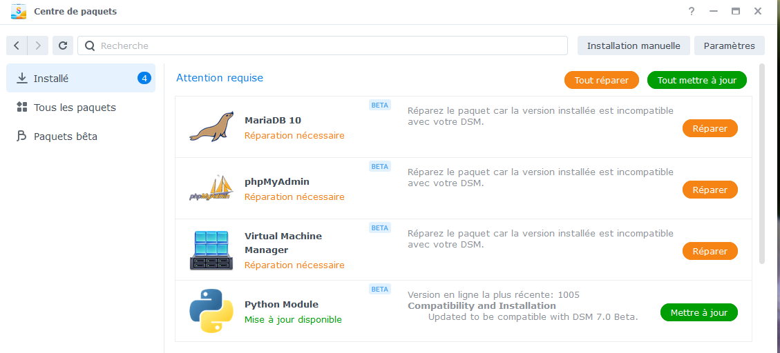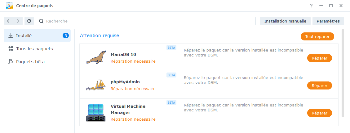 Réparation des paquets OK.