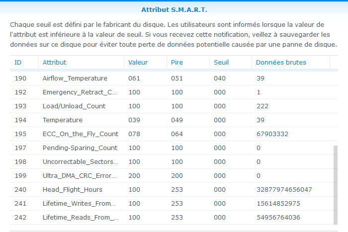 Du coup ne sachant pas correctement interpréter les détails SMART je souhaiterais avoir vos avis :