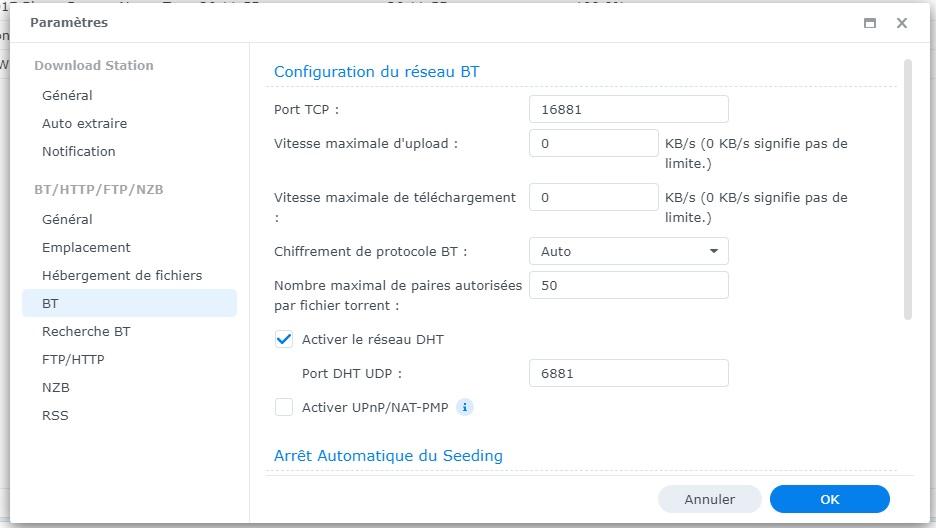 Lorsque je lance un telecharegement via Download Station, avec un lien débridé via alldebrid, ce dernier demarre, mais je ne dépasse pas les 20 ... 22 mo/s alors qu'à la base, je suis censé arrivé à 30 - 34 mo/s.