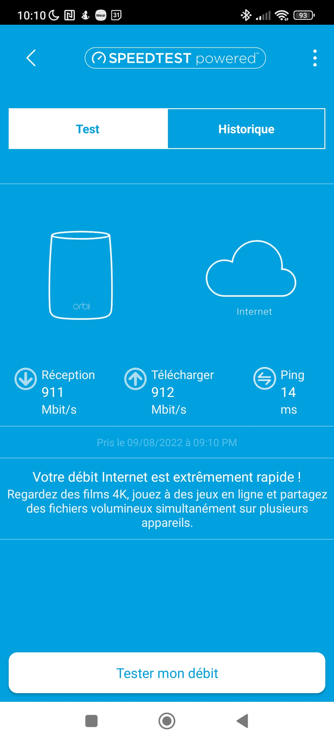 En photo vous avez le débit NAS , le speed test routeur, et le speed test direct en wifi du smartphone et le telech direct smartphone