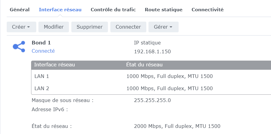 J'ai créé un bond entre les 2 LAN de mon DS920+.
