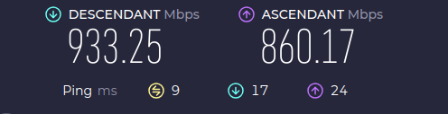 Vitesses équivalentes aux résultats d'un speedtest sur un pc en ethernet.