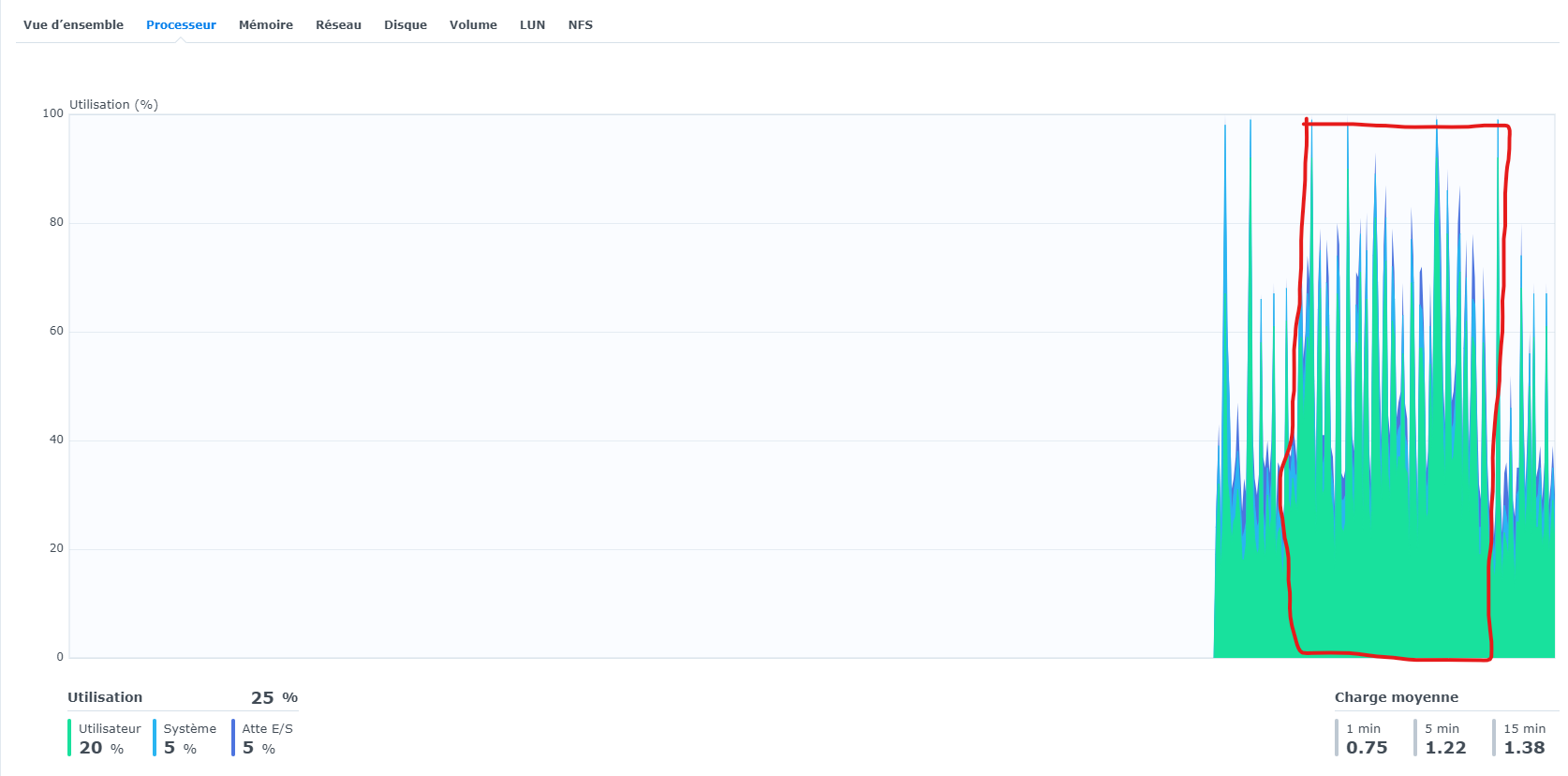 comme tu peux le voir, le processeur est à fond, même avec un jeedom refait en entier ce weekend, il y a un plugin qui consomme beaucoup de ressource, et je ne peux pas m'en passer