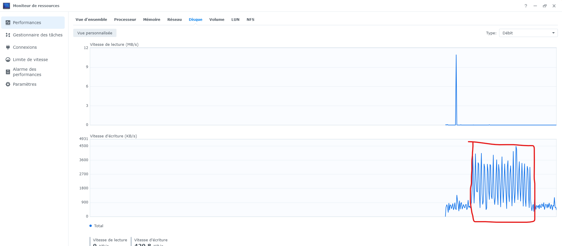et je m'aperçois que j'ai l 'accès au disque qui s'emballe aussi